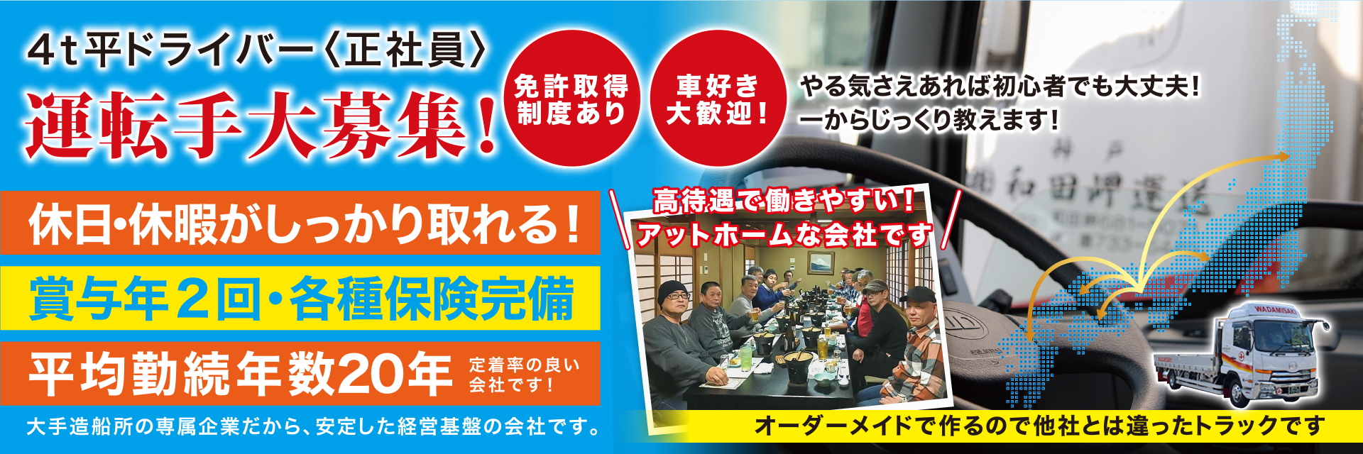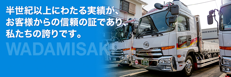 私たち和田岬運送は、1961年に創業して今日にいたるまで、時代の移り変わりとともに、お客様のため、そして地域の発展のために貢献してきました。お客様の視点にたち、真摯にそのニーズに応え続けてきたからこそ、今の私達があります。